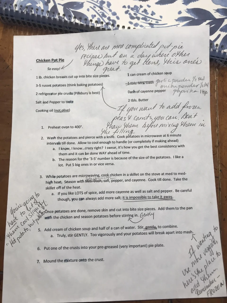We had gone to visit his parents and he DEVOURED his mom’s potpie. I asked her for the recipe and, like any great cook, she didn’t have it written down; she just put in “a little of this and a little of that”. I translated the little of this and that and started adapting it so I could adopt it as my own.